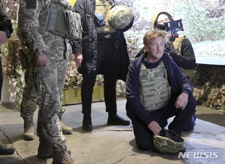 우크라이나 최전방 주둔지 살피는 숀 펜