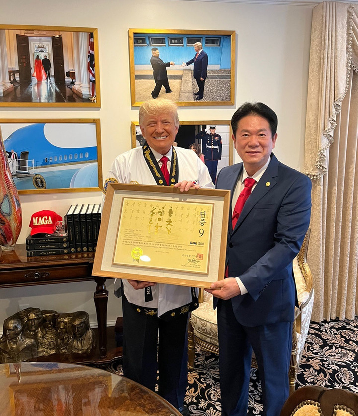 국기원, 트럼프 전 대통령에 명예 9단증과 태권도복 전달