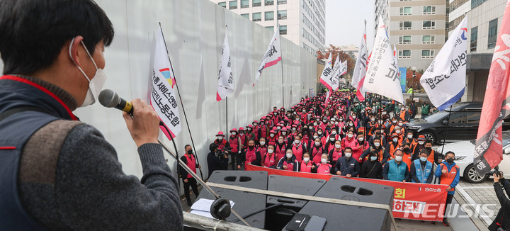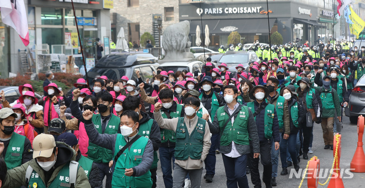 행진하는 민주노총 비정규직 노동자들 '차별 철폐 촉구'