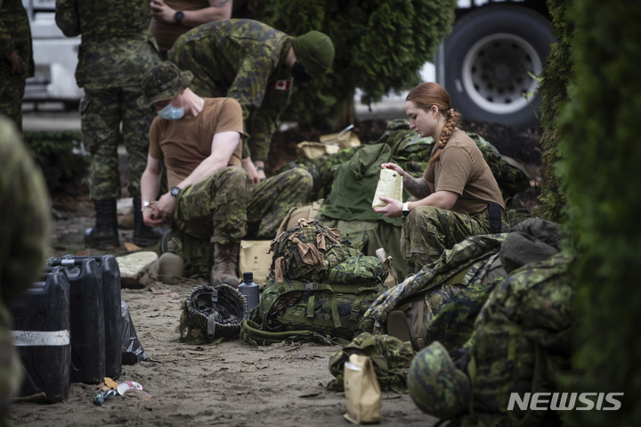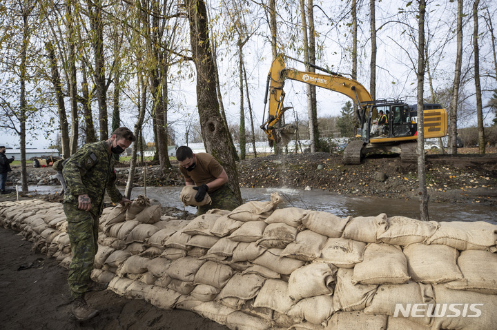 "또다시 호우경보" 대비하는 캐나다군 병사들