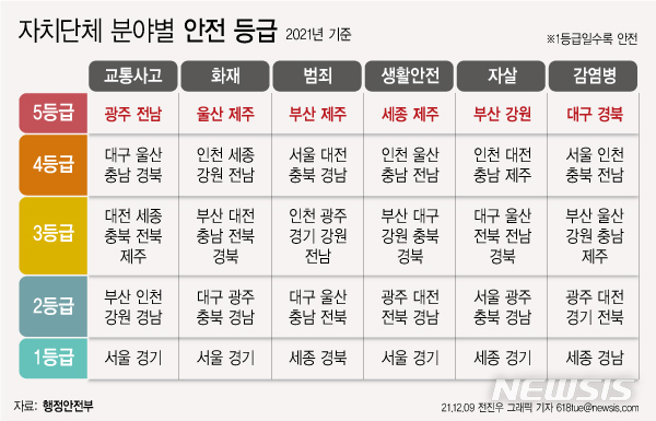 [그래픽] 올해 전국 지역안전지수, 범죄·화재 가장 불안한 도시는 제주