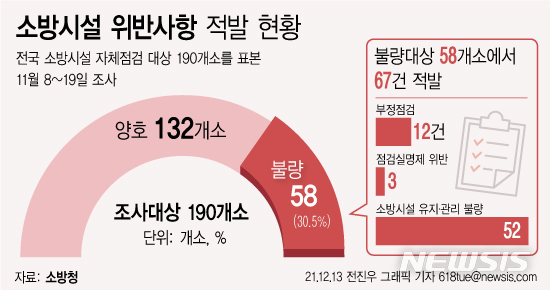 [그래픽] 소방시설 위반사항 점검, 10곳 중 3곳 불량