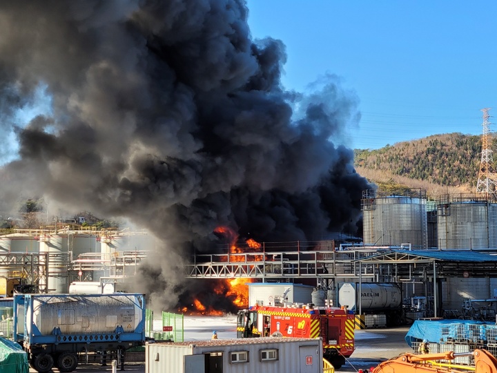 여수산단 업체서 폭발사고, 검은 연기 발생