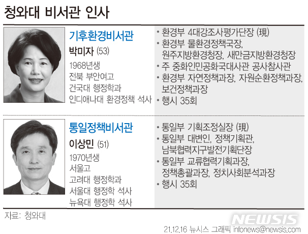 [그래픽] 청와대 기후환경·통일정책비서관 인사