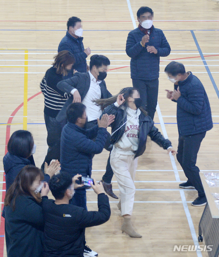 '오미크론 확산에도 뒤엉켜 춤추는 공무원과 군민들'