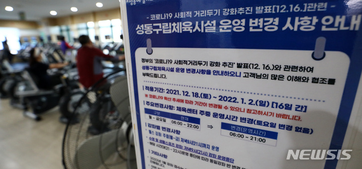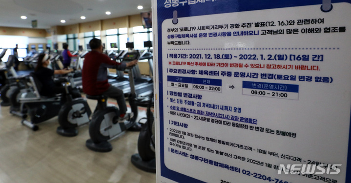 '거리두기 강화로 실내체육시설 오후 9시까지'