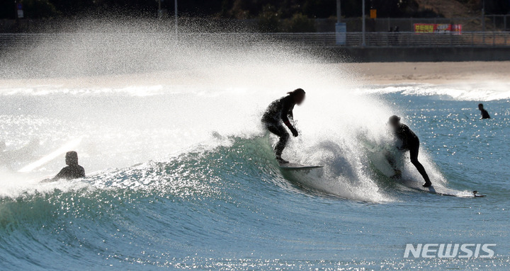 영하권 추위에 즐기는 서핑