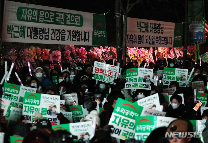 박근혜 지지자들 '석방 축하 쾌유 기원'