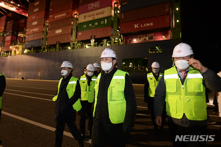 인천신항 하역 현장 둘러보는 윤석열