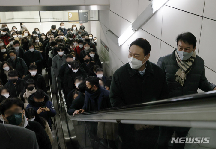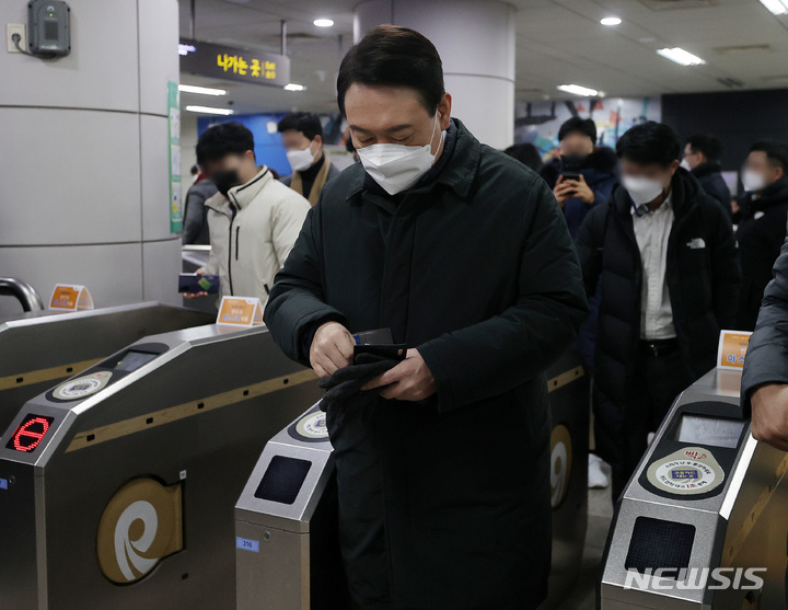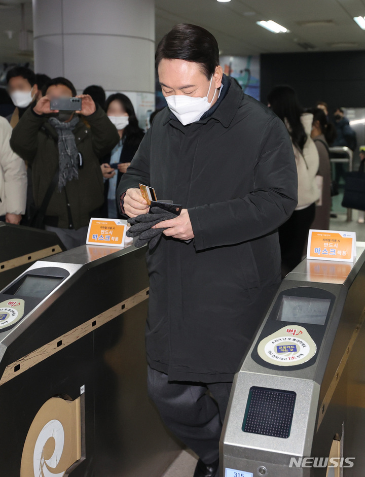 윤석열 '지하철 9호선 타고 출근'
