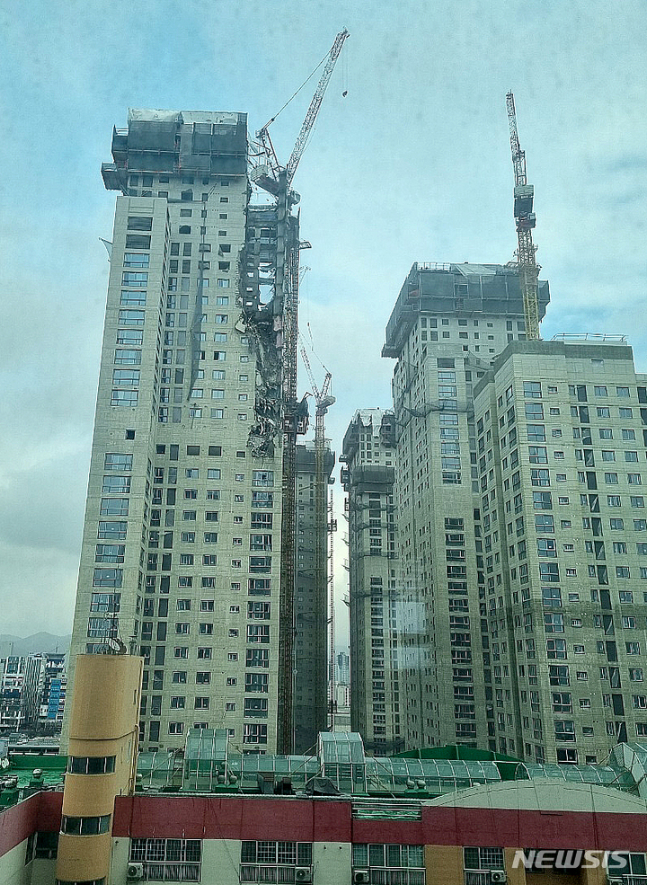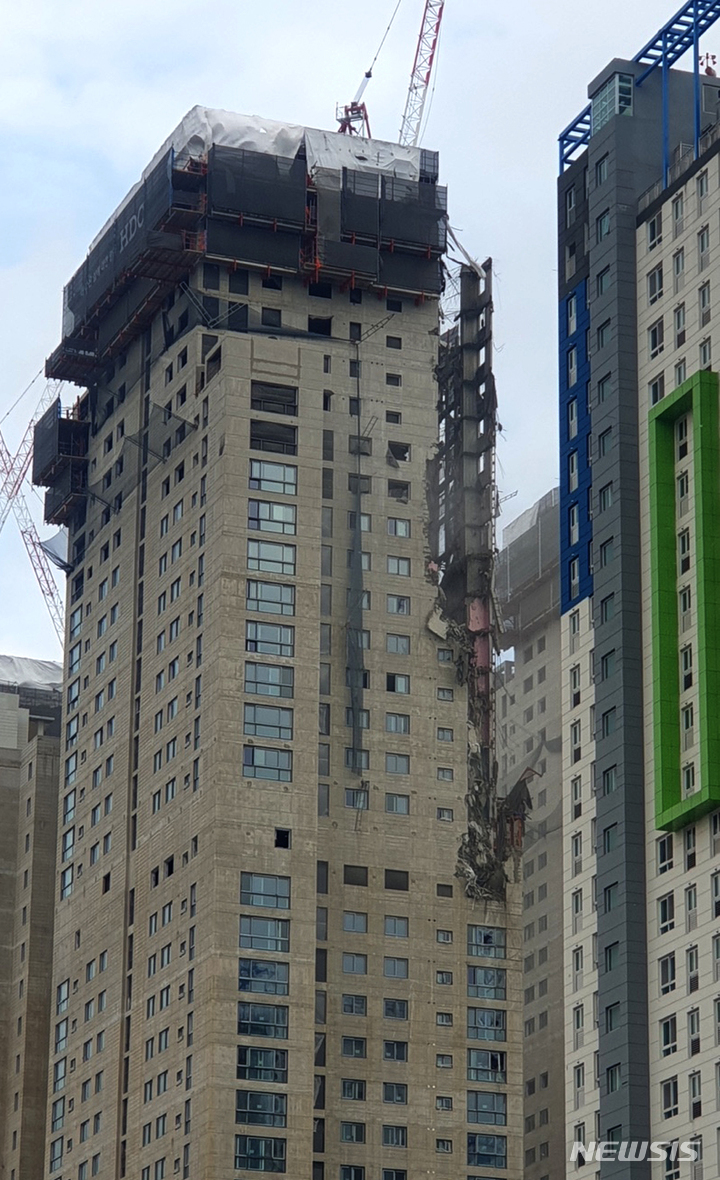 광주 고층아파트 신축 공사 현장서 외벽 무너져 내려