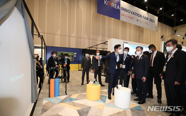 삼성전자 '더프리스타일' 설명 듣는 문 대통령