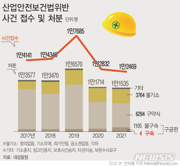 [그래픽] 작년 산재 관련사건 1만건 중 87%가 약식·불기소