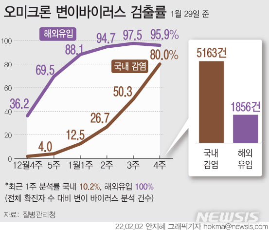 [그래픽] 오미크론 변이 바이러스 검출률 추이