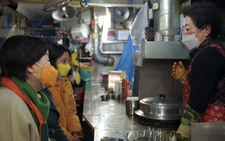 남대문칼국수골목 찾은 심상정 정의당 대선 후보