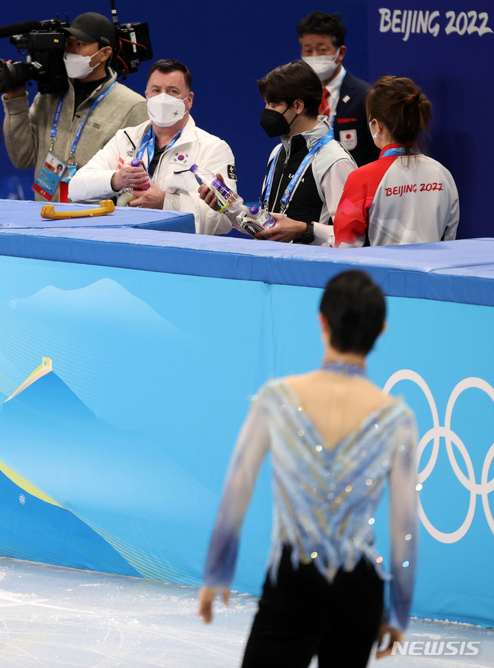유즈루 바라보는 브라이언 오서 코치