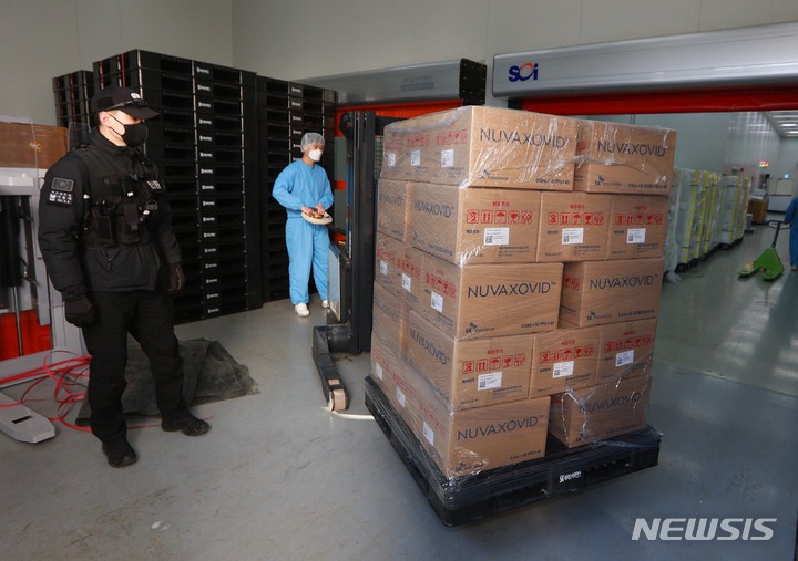 수송 차량에 실리는 노바백스 백신 84만 회분