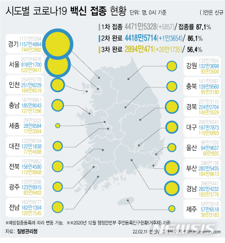 [그래픽] 시도별 코로나19 백신 접종…3차 경기 744.2만, 서울 522.9만명