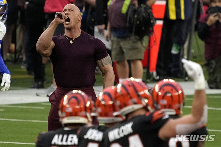 슈퍼볼 개막 선언하는 드웨인 존슨