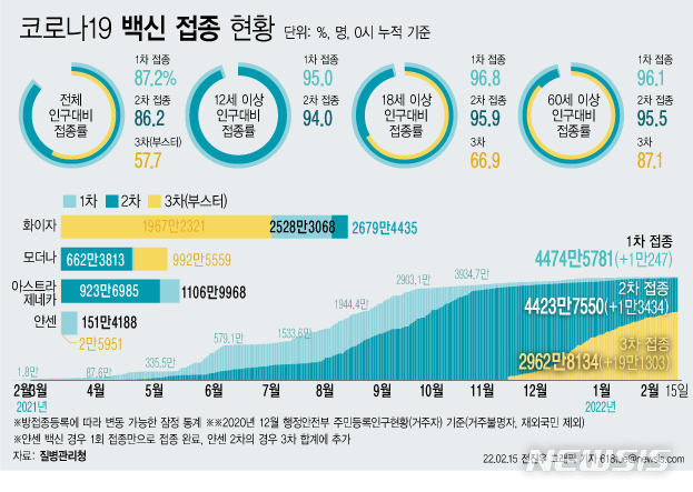 [그래픽] 국민 57.7% 3차 접종 마쳐…고령층 87.1% 참여