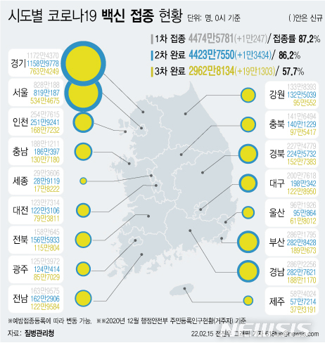[그래픽] 시도별 코로나19 백신 접종…3차 경기 763.4만, 서울 534.4만명