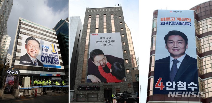 광주에 걸린 이재명·윤석열·심상정·안철수 후보 현수막