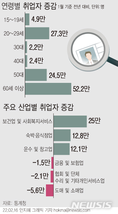 [그래픽] 1월 연령별 취업자 증감 현황…46%가 60대 이상
