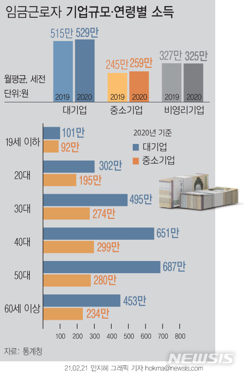 [그래픽] 대기업·중소기업 임금 격차 2배 넘어