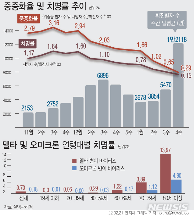 [그래픽] 오미크론 치명률 0.38%, 델타 ¼