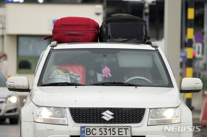짐 싣고 폴란드로 대피하는 우크라이나 여성
