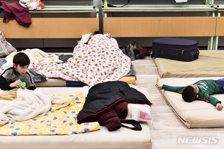 헝가리 난민 쉼터서 노는 우크라이나 어린이들