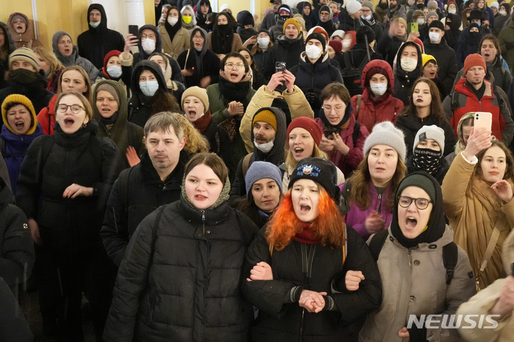 전쟁 반대 구호 외치는 러시아 시위대