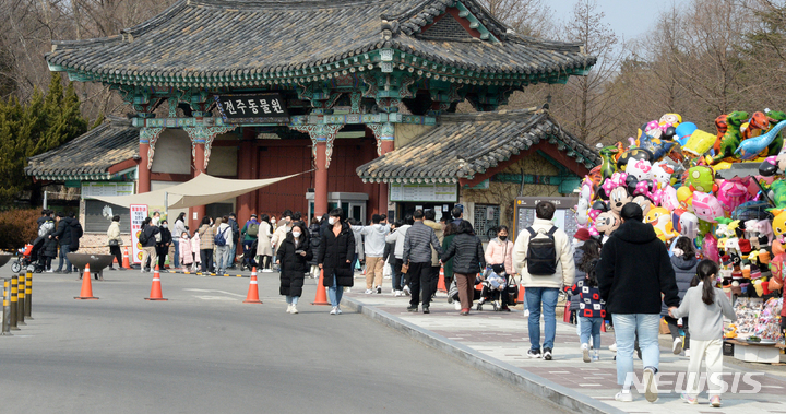 '포근한 날씨에 북적이는 전주동물원'