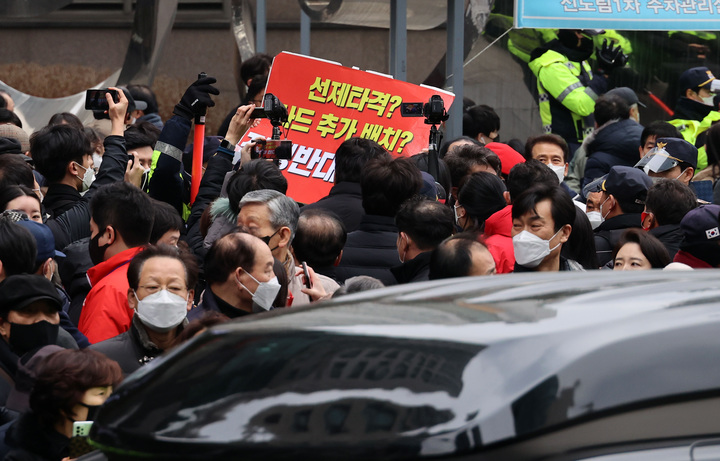 윤석열 유세 현장 기습시위