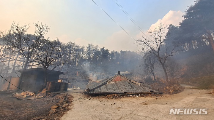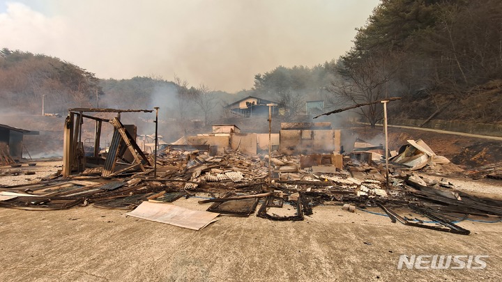 경북 울진 산불에 지붕만 남은 가구