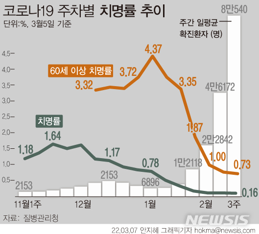 [그래픽] 코로나19 주간 치명률 추이