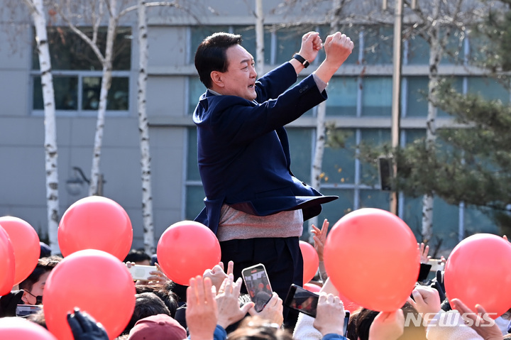 어퍼컷 세리머니하는 윤석열 대선 후보