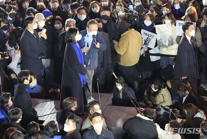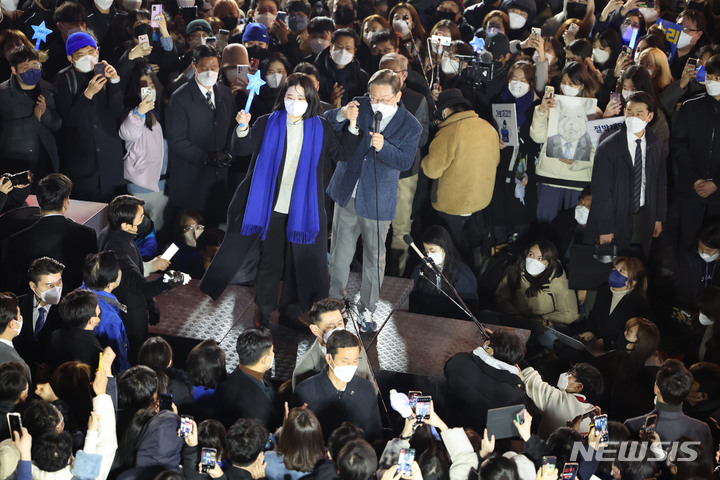 홍대서 지지 호소하는 이재명 후보