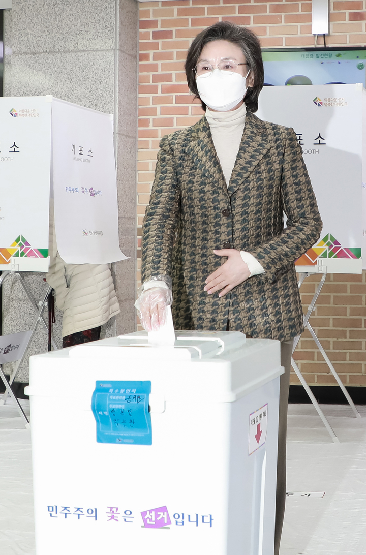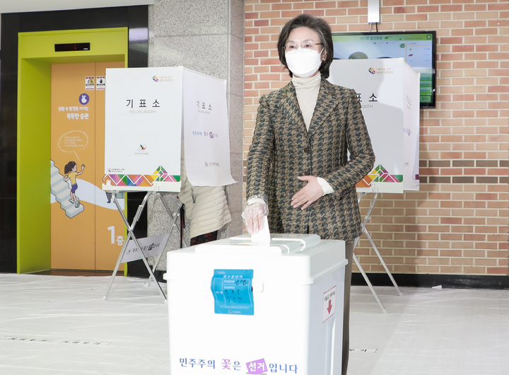 투표하는 노정희 중앙선거관리위원장