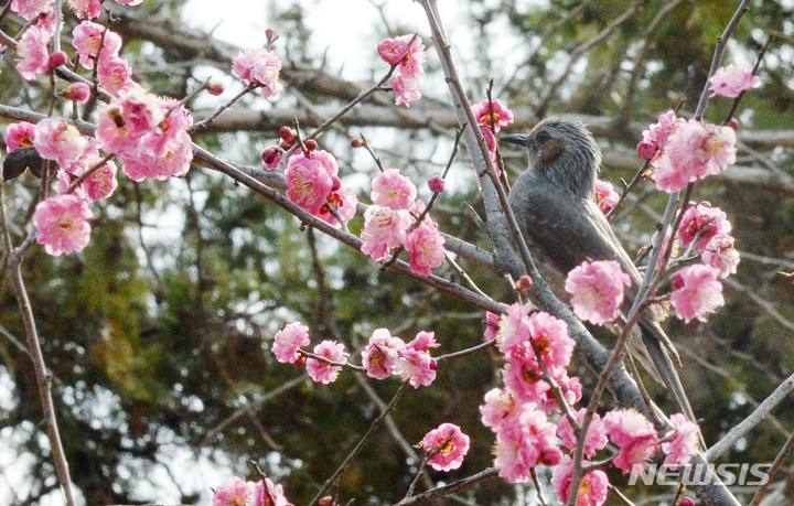 '만개한 홍매화 찾아온 직박구리'