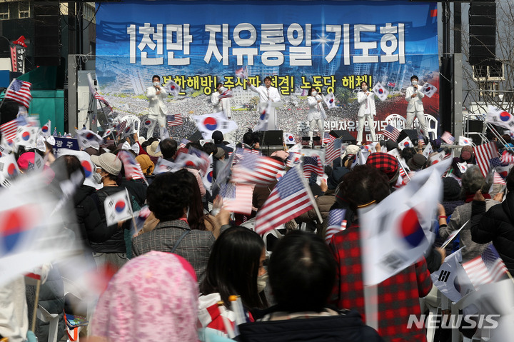 세종대로 인근에서 열린 사랑제일교회 기도회