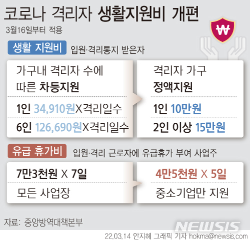 [그래픽] 코로나 격리자 생활지원비 개편