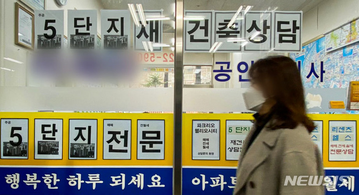 잠실 주공 5단지 재건축 상담 안내문 붙은 부동산