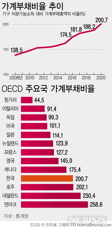 [그래픽] OECD 주요국 가계부채비율