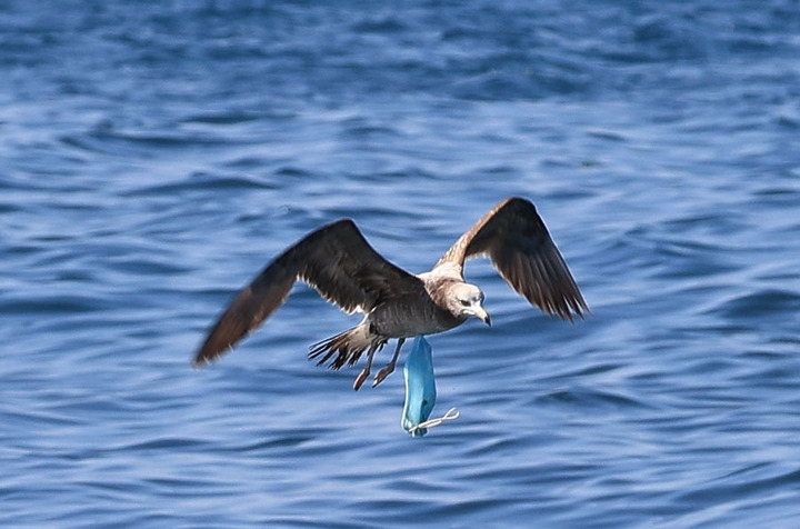 일회용 마스크 매단 채 날아가는 갈매기