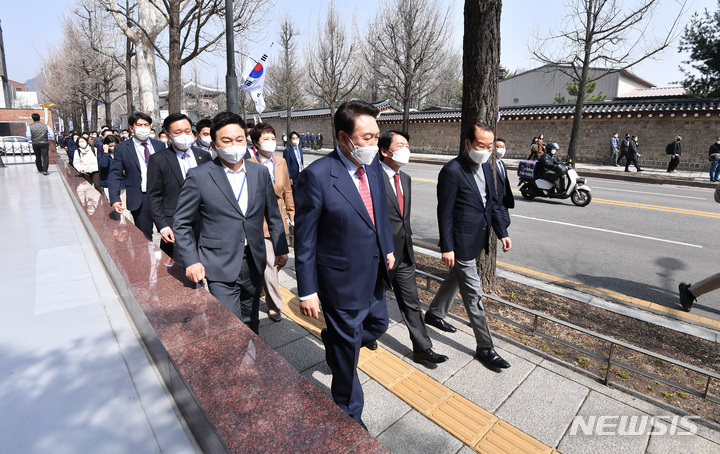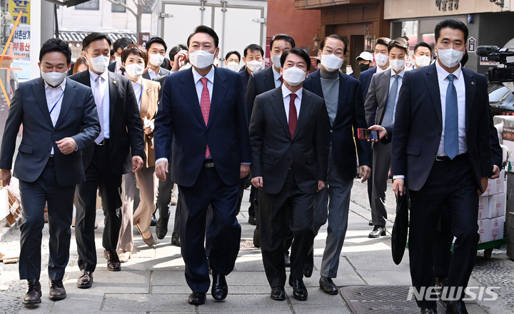 식당 향하는 윤석열-안철수-권영세