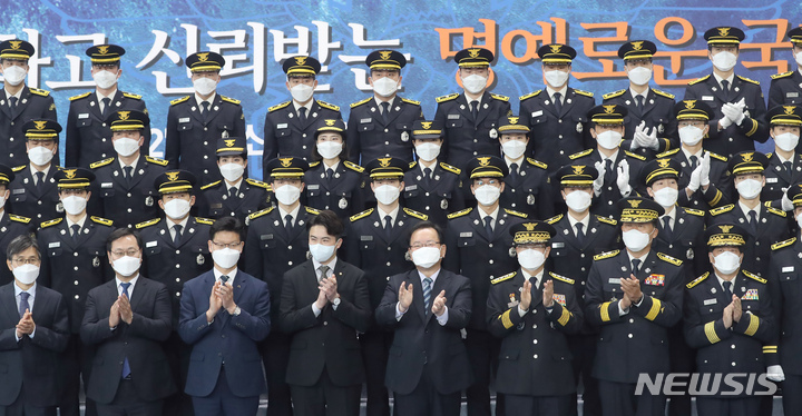 소방간부후보생과 기념촬영 하는 김부겸 총리