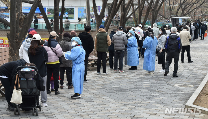 일요일 아침부터 길게 줄선 코로나19 선별진료소