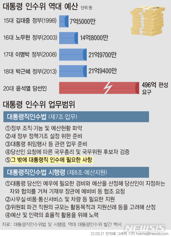 [그래픽] 대통령 인수위 업무범위 및 역대 예산