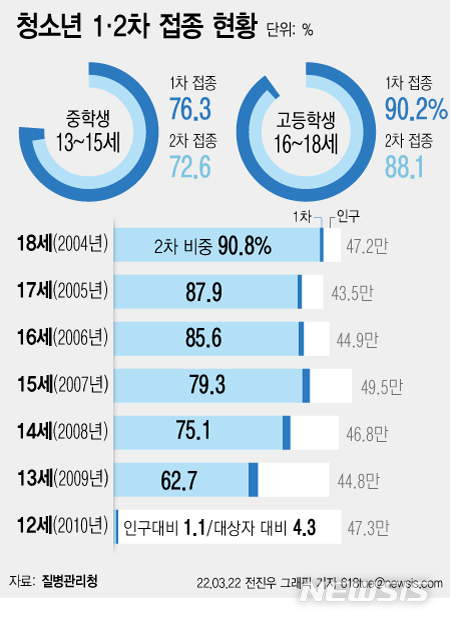 [그래픽] 코로나 백신 2차 접종률… 중등 72.6%, 고등 88.1%